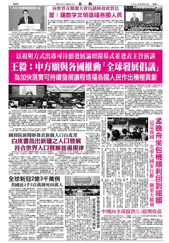 【中新社北京9月26日電】中國國家主席習近平26日向2021年世界互聯網大會烏鎮峰會致賀信。