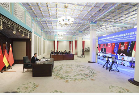默克爾表示,過去16年間,德中經貿關係在雙方共同努力下取得巨大發展。德方願繼續同中方加強對話溝通,協調標準制定,為雙方企業在兩國投資興業提供公平市場環境,為深化雙方在信息通信、數字經濟、可再生能源等多領域合作注入強勁動力,實現互利共贏。