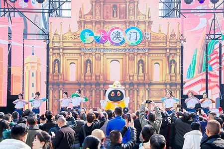 【特訊】「重慶澳門周」昨日(三日)隆重開幕,在重慶市渝中區解放碑廣場呈獻的大型路展由十二月二日至六日舉行,透過具吸引力的展位、互動體驗、舞台表演及打卡遊戲等,推廣澳門多元化的旅遊及商貿等元素,展現「旅遊+」豐富內涵,並宣傳「安全宜遊‧魅力澳門」的形象。
