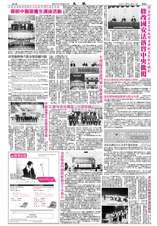 張永春指出,澳門維護國家安全的形勢總體良好,但隨著維護國家安全的形勢日趨複雜,澳門特區有需要進一步完善相關法律制度和執行機制。張永春相信,中央很快會任命國家安全事務顧問和國家安全技術顧問,維護國家安全委員會亦很快開會,工作全面覆蓋特區政府和維護國家安全各項事務,完善國安法亦是明年度重點立法工作。