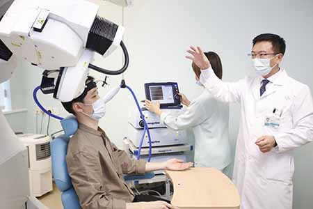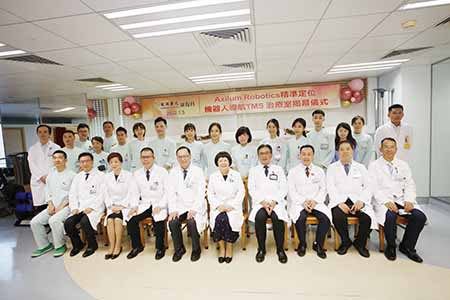 鏡湖醫院康復科二○二一年率先在港澳台地區的醫院引進法國Axilum Robotics機器人系統,開展機器人導航精準定位的TMS經顱磁刺激治療。該項治療技術是利用腦神經立體定位系統在機器人引導下進行的TMS經顱磁刺激精準治療技術,即導航經顱磁刺激。