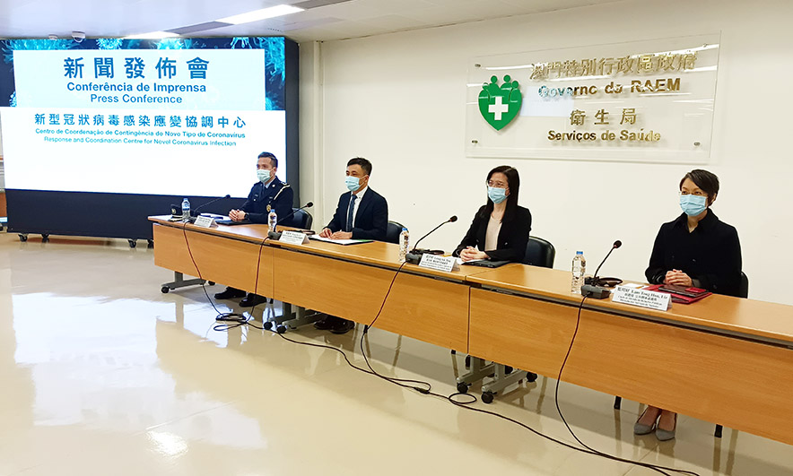 新型冠狀病毒感染應變協調中心昨日舉行記者會,教育及青年發展局非高等教育廳廳長黃嘉祺、衛生局疾病預防及控制中心傳染病防控處處長梁亦好、治安警察局行動及通訊處處長馬超雄、旅遊局公共關係處處長藍同好介紹了本澳及鄰近地區整體防疫情況。