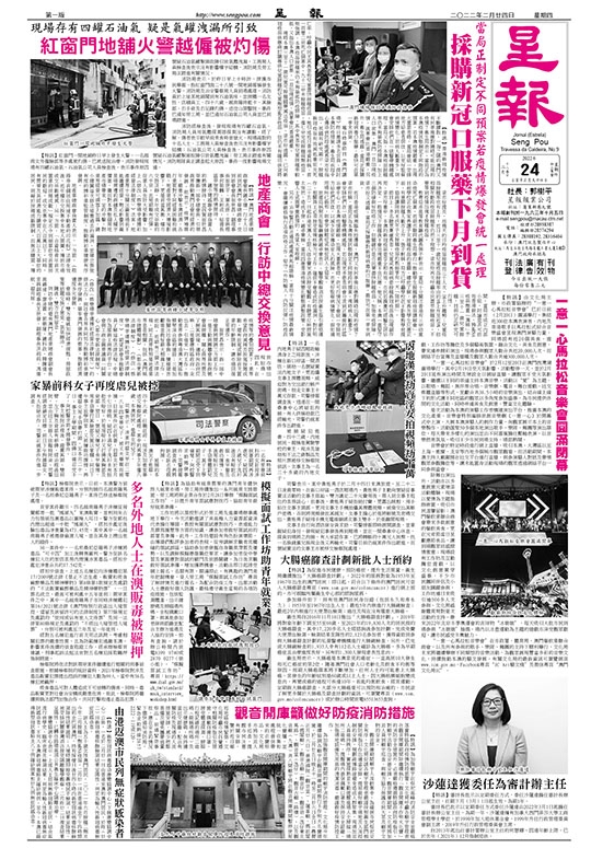 【特訊】香港新冠疫情不斷擴散,一海之隔的澳門又有何準備應對隨時可能出現的疫情?衛生局表示,當局正為本澳疫情狀態制定不同階段的預案,若本澳疫情嚴重,出現大量患者時,當局會統一安排地方給患者居住,以更好監察病情變化;若病人數量少,則會安排他們在一級醫療機構處理。當局又指,本澳疫苗接種率仍未夠築起防疫屏障,加上人口密集,澳門一旦出現疫情,後果會比香港嚴重。另外,衛生局透露,當局正採購新冠病毒口服藥,最快可在第一季末到貨。