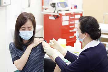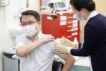 隨著首批十萬劑國藥新型冠狀病毒滅活疫苗抵澳,政府開展疫苗接種工作,新型冠狀病毒感染應變協調中心昨日在山頂醫院急診大樓地面層廿四小時門診舉行新型冠狀病毒疫苗接種啟動儀式,行政長官賀一誠率領經濟財政司司長李偉農、保安司司長黃少澤、社會文化司司長歐陽瑜、運輸工務司司長羅立文、檢察長葉迅生、廉政專員陳子勁、警察總局局長梁文昌、海關關長黃文忠、各司長辦公室主任、衛生局領導層及屬優先接種的醫護、警務、消防、海關、航空及貨運、社服、教育、博彩業的前線人員代表等八十多人接種疫苗。