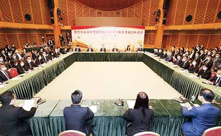 傅自應又表示,儘管在世界百年未有之大變局和世紀疫情交織影響下,外部形勢複雜嚴峻,澳門也受到衝擊,亦要堅定不移地推進澳門特色「一國兩制」實踐向前發展,以及要做融入國家發展的勇毅探索者,橫琴粵澳深度合作區實現穩步開局,要把握時代脈搏、大膽地試,走進、融入及建設深合區。