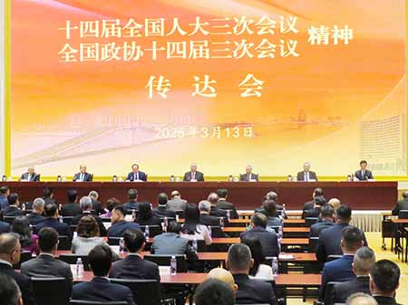 中央政府駐澳門聯絡辦公室昨日下午召開全國「兩會」精神傳達會。全國政協副主席何厚鏵、澳門特區行政長官岑浩輝、中央政府駐澳門聯絡辦公室主任鄭新聰分別講話,崔世安先生、賀一誠先生出席,澳區全國人大代表團團長劉藝良、全國政協特邀澳門人士界召集人崔世昌分別傳達十四屆全國人大三次會議、全國政協十四屆三次會議精神。鄭新聰主任主持會議。外交部駐澳門特派員公署特派員劉顯法,中央政府駐澳門聯絡辦公室副主任黃柳權、呂玉印、張應傑參加會議。
