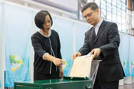 此外,在投票站和劃票間內,管委會已張貼告示,提醒投票人不得在投票站和劃票間內使用手提電話、相機等電子器材;而投票人須使用管委會提供的專用筆劃票,假如投票人在劃票時出錯,可以向在場工作人員提出更換選票,以確保有效劃票,換票次數不限。