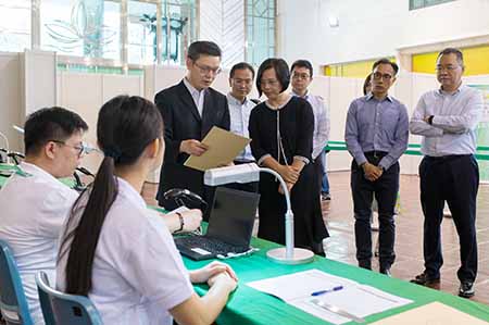 行政長官選舉管理委員會成員昨日巡視行政長官選舉委員會委員選舉的模擬票站,了解票站設置和投票程序。管委會主席宋敏莉提醒,於六月十六日舉行的選委會委員選舉,投票人須遵守法律規定,不能於投票站內或投票站外一百公尺範圍向他人透露其投票意向。