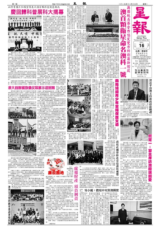 國家航天局正式在澳門科技大學成立太空探索與科學中心,而澳門首顆衛星以「澳科一號衛星」來命名,國家航天局局長張克儉表示,高度重視澳門在航天科技領域的發展。為慶祝澳門回歸20周年,航天科普展於昨日早上在科技大學舉行開幕儀式。社會文化司司長譚俊榮為澳門首顆衛星「澳科一號衛星」揭曉命名。國家航天局局長張克儉致辭時表示,局方高度重視澳門在航天科技領域的發展,同時藉著澳門回歸 20周年簽署合作協議,為澳門與內地在航天項目合作揭開新序幕,並透過展覽提升本澳市民參與航天的積極性,為培育科學人才營造良好氛圍。張克儉稱,國家航天局在澳門設立中心,將會提升澳門航天科技的實力,促進澳門航天產業的多元化發展。