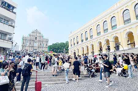 大三巴附近的手信店東主表示,近日人流較平日增加兩至三成,旅客平均消費約三百元,並且表示,今年的國際旅客,如韓國、日本、東南亞等國際旅客有復甦跡象。鄰近板樟堂的小食店負責人稱,踏入中秋假期人流增加,但認為今年旅客消費力較低,生意按年減少一半。