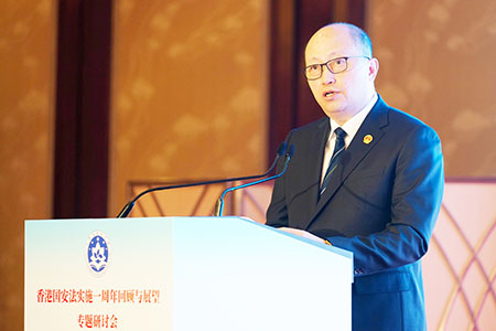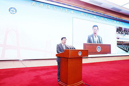 夏寶龍指出,香港國安法的頒布實施,一舉扭轉香港亂局,實現了重大轉折,是「一國兩制」實踐的重要里程碑。香港特別行政區堅決履行維護國家安全的憲制責任,全力築起香港維護國家安全的「銅墻鐵壁」,使國安法在香港落地生根、虎虎生威,成為香港繁榮穩定的「守護神」。