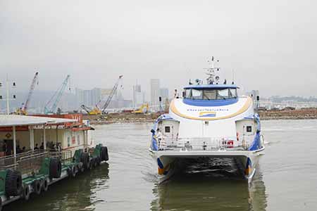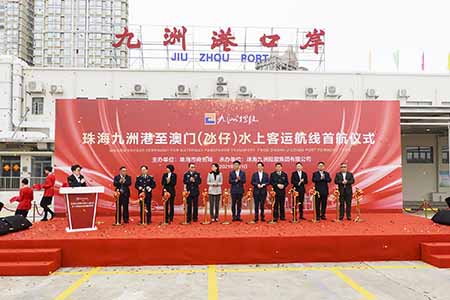 粵通船務營運的氹仔客運碼頭往來珠海九洲港海上航線昨日首航,每天來回共二十班,航程約廿五分鐘。首班九洲港出發航班共有一百廿四名乘客;澳門首班船則有十二乘客。有首班船乘客表示,航線開通後到澳門氹仔較以往陸路快近半小時,亦有乘客表示,日後考慮乘坐船隻來澳門國際機場乘搭飛機航班。