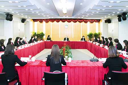 出席會見的還包括社會文化司司長歐陽瑜、行政長官辦公室主任許麗芳、顧問張作文;婦聯監事長吳秀瓊、副會長林笑雲、招銀英、劉金玲、周霓、李睿恆、陳愛珠、呂育敏及多位副理事長。