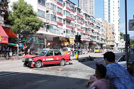 肇事的士直衝行人路安全島後停下,多名行人躲避不及被撞倒,一名懷孕五個月的孕婦被捲入車底,超過二十名路人上前,合力抬起及移開的士將壓在車底的傷者救出。