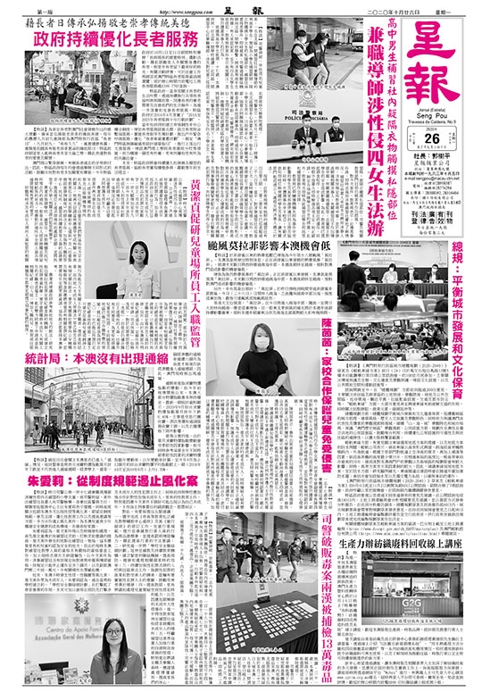 被捕男高中學生姓周,十七歲,本澳居民,在北區一間學校就讀,在同區一間補習中心任兼職導師;涉及對兒童之性侵犯罪被移交檢察院處理。