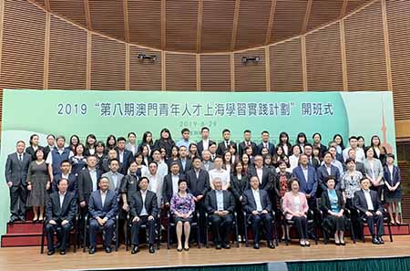 由全國政協港澳台僑委員會、上海市政協、澳區全國政協委員、中聯辦、澳門基金會主辦之「第八期澳門青年人才上海學習實踐計劃」開班式昨日假澳門科學館會議中心舉行,全國政協副主席何厚鏵、全國政協港澳台僑委員會委員林智敏、上海市政協副主席張恩迪、中聯辦協調部部長傅鐵生、全國政協港澳台僑委員會副主任賀定一、澳門基金會行政委員會主席吳志良、全國政協委員兼上海市政協常委沈敏、以及學員推薦機構負責人等約八十人出席。