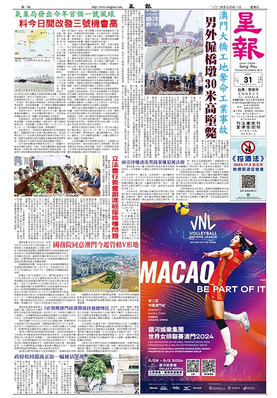 公共建設局及勞工局高度重視昨日(三十日)上午澳門大橋工地工業事故,並對事故造成一名外地僱員死亡表示難過及高度關注,同時對其家屬致以慰問。