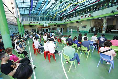 善豐花園管委會假沙梨頭坊眾學校舉行急緊業主大會,交代現時善豐花園重建情況。