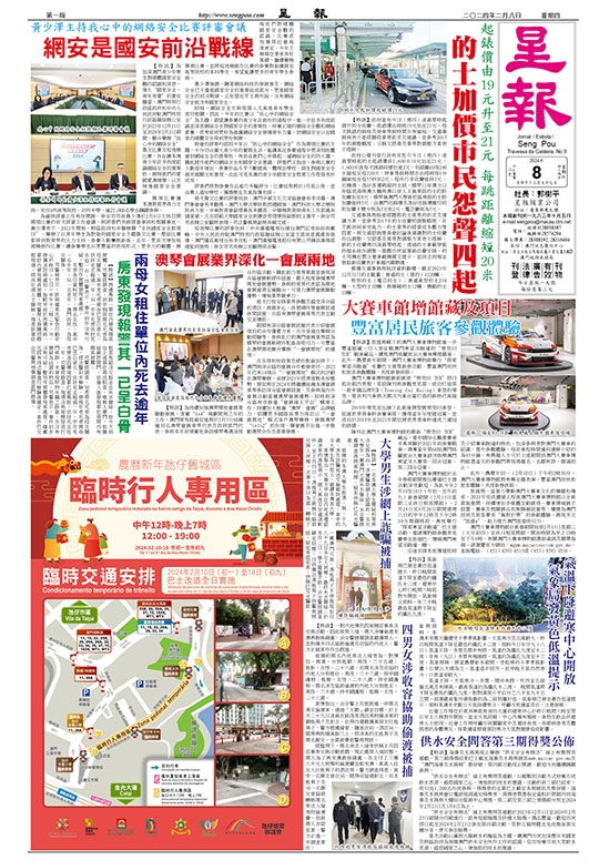 政府公報刊登行政長官批示今日(周四)凌晨零時起的士起錶價首1,600米19元加至21元,1,600米後每次跳錶同樣也是2元,但距離由每240米縮短至每220米;停車等候時間亦由現時每1分鐘縮短至每55秒加2元;每件行李收費維持3元;在機場、氹仔客運碼頭的士站、橫琴口岸澳方口岸區或港珠澳大橋珠澳口岸人工島乘搭的士的附加費加至8元;橫琴島澳門大學新校區乘搭的士附加費維持5元;由澳門往路環及氹仔往路環繳付的附加費不變分別為5元和2元;電召費則為5元。