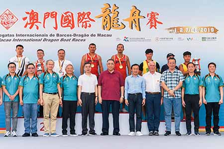 【特訊】由體育局及中國澳門龍舟總會主辦的「2019澳門國際龍舟賽」昨日端午節於南灣湖水上活動中心進行壓軸日的賽事,包括澳門國際邀請賽標準龍五百米公開組、女子組以及大學生邀請賽標準龍五百米公開組賽事。各隊經過多番比拼後,最終泰國國家隊勇奪標準龍五百米公開組冠軍,中國南海九江成功衛冕標準龍五百米女子組冠軍,而大學生邀請賽標準龍五百米公開組由澳門大學奪得。體育局局長潘永權表示,今年賽事運作順利,錄得入場二萬五千人次,感到賽事整體氣氛愈來愈好,居民亦樂意參與龍舟傳統體育項目。