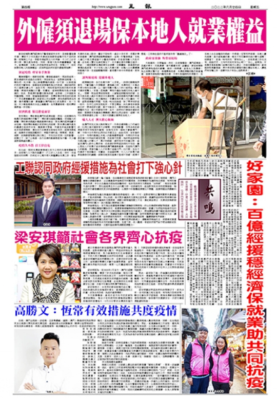在澳門市民水深火熱的情況下,外勞佔總勞動人口仍逾四成,比例之高可謂非常不合情理。受疫情影響,世界各地的經濟都受到不同程度的摧殘,但相信沒有一個地方會像澳門一樣,今時今日外勞的比例仍佔半壁江山,由此可見,在官員的心目中,外勞的飯碗比本地人的飯碗還要重要,外勞的作用並非官員口中所說的補充性質,而是替代性質。為何特區政府每次提出輸入什麼人才、專才的時候,總有很多市民會反對,這並非澳門人排外心態作祟,而是源於對特區政府的不信任,擔心那些人才和專才並非單純助澳門構建新產業,而是取代澳門人的飯碗,更害怕輸入人才和專才這扇大門一旦打開,在各方的操弄下易放難收。老實說,在這個時勢,引入人才和專才絕非是最急切的議題,保障本地居民就業才是刻不容緩。經濟不景氣,工作崗位真的不能再被外勞「鵲巢鳩佔」了。
