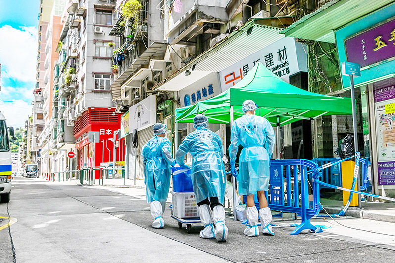 須強調的是,關閉提供非緊急服務的公共部門並不影響全體各級公務人員在不同工作地點處理極其大量的前線和後勤支援工作,包括處理資訊發佈、聯繫協調、調動物資及協助居民等;同時,因應紅碼封控區數量的增加,前線抗疫人員的工作壓力激增,為數不少的各部門人員投身到前線和後勤,協助紅碼封控區內的維生支援工作,例如派送物資予被管控的住戶。此外,也有相當多的公務人員到核酸檢測站與場所人員、社團和學校老師等,眾志成城共同維持站內秩序,以及協助居民順利完成核檢安排,共同抗擊疫情。