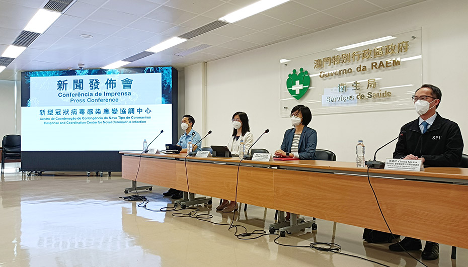 新型冠狀病毒感染應變協調中心昨日舉行記者會,旅遊局傳播及對外關係廳廳長劉鳳池、衛生局疾病預防及控制中心傳染病防控處處長梁亦好、警察總局警務聯絡及公共關係處處長張健欣、治安警察局公共關係處處長李德輝分別介紹了本澳及鄰近地區整體防疫情況。