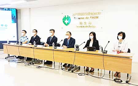新型冠狀病毒感染應變協調中心昨日舉行記者會,山頂醫院醫務主任李偉成、教育及青年發展局非高等教育廳廳長張子軒、旅遊局傳播及對外關係廳廳長劉鳳池、衛生局疾病預防及控制中心傳染病防控處處長梁亦好等分別介紹了本澳整體防疫情況。