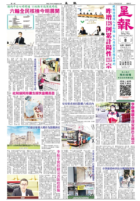 梁亦好表示,本澳前(六)日新增一百二十八宗陽性個案,包括紅碼區及醫學觀察酒店四十一例,屬於管控中發現;密切接觸者三十六例、全民核酸及重點人群發現的陽性三十八例、其他人群有十三例,屬於社區中發現;自上月十八日起累計共一千二百一十五宗陽性個案。截至昨早八時,通過流行病學調查共跟進一萬五千一百一十六人,其中核心密切接觸者二千五百五十六人,非核心密切接觸者(即共同軌跡人士)九千四百九十八人,次密切接觸者七百九十二人,一般接觸者三百三十一人,陪同人員七百二十二人。根據流行病學調查,疫情感染群組維持為十八個。此外,梁亦好證實新福利一名巴士司機確診,但初步顯示與工作無關,會跟進其密切接觸者及共同軌跡人士。