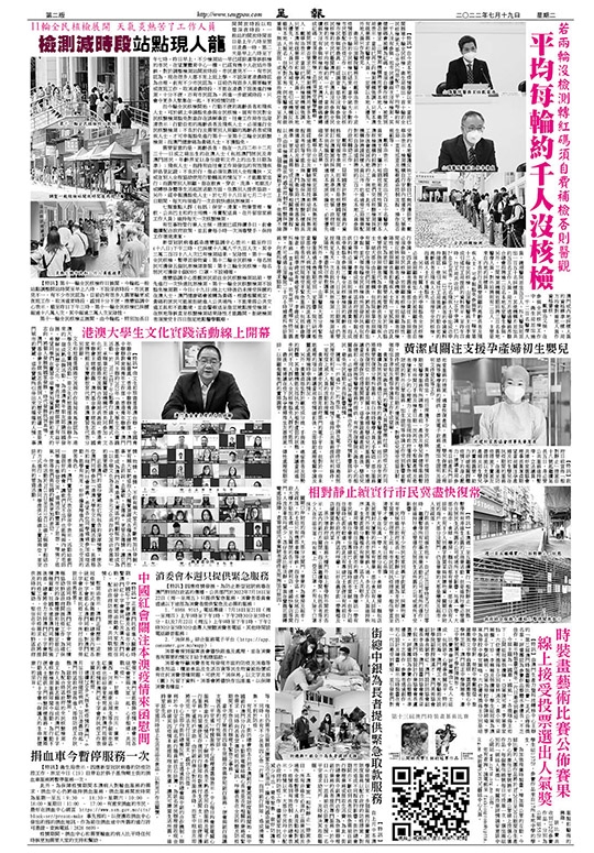 衛生局山頂醫院醫務主任戴華浩表示,今波疫情首十輪的全民核檢已結束,當中絕大多數的市民都配合防疫工作,以第九輪和第十輪全民核檢市民參與率最高。而經調查,部分沒有參與全民核檢的市民已離開澳門,在澳而沒有參與全民核檢的市民,平均每輪約有一千人,當局會把連續兩次沒有參與核檢的市民,其澳門健康碼會轉成紅碼,並須自費核檢,否則須接受醫學觀察。