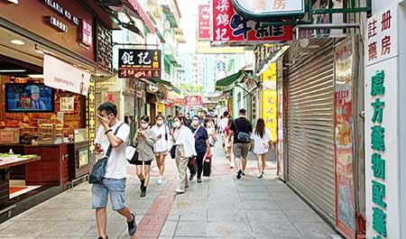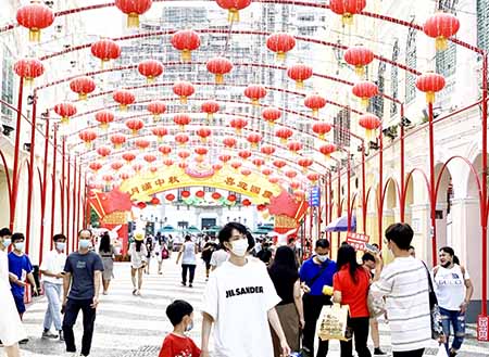 【特訊】不少內地旅客趁一連三日的中秋假期來澳遊玩,雖然旅遊區人流摩肩接踵的盛況不再,但相比起「六一八疫情」期間的蕭條冷情慘況,近日市面已稍為回復人氣。有旅客認為現時本澳酒店房價吸引,出入境防疫措施亦不會影響出行心情。除了來澳旅遊外,亦有旅客專程來澳接種新冠疫苗,認為在澳門接種比內地更加方便。有商戶指出,中秋檔期訪澳旅客量一般,生意未如理想,直言只能調整心情「睇化啲」。