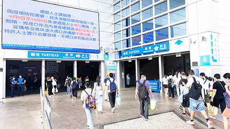 中秋節翌日,早上關閘口岸入境人流絡繹,通關秩序大致暢順,當中有不少旅客手推行李箱。前往博企酒店的免費接駁巴士等候區,亦有數十人排隊。有一家大小來澳旅遊的中山旅客張小姐稱,趁中秋假期帶子女來澳門玩,認為澳門現時酒店房價很平、很抵,平均每晚只需一百多元,防疫措施亦較嚴謹。她又稱澳門的設施和遊樂地方已較以往全面,特別是一些大型渡假村設的主題活動,亦有較多戶外公園可讓小朋友玩,比較吸引家庭客。