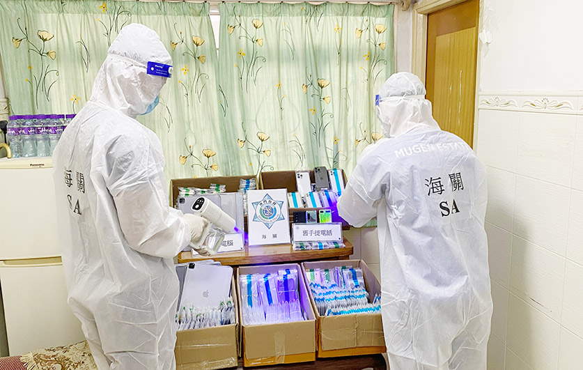 【特訊】海關昨日再在關閘彩虹苑某住宅單位破獲水客散貨點,帶走兩名女負責人以及四名懷疑從事水客活動的女子,檢獲四百五十部舊手機及十部平板電腦,估計價值約一百四十八萬澳門元。