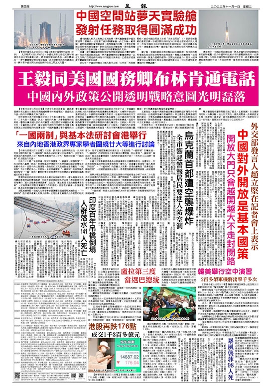 【香港中通社北京10月31日電】(香港中通社特約記者 莊恭) 北京時間31日15時37分,中國在海南文昌航天發射場運用長征五號B運載火箭,將中國空間站的最後一個主體艙段——夢天實驗艙發射至預定軌道。此次發射任務取得圓滿成功,標示著中國空間站建造任務的收官之戰正式打響。