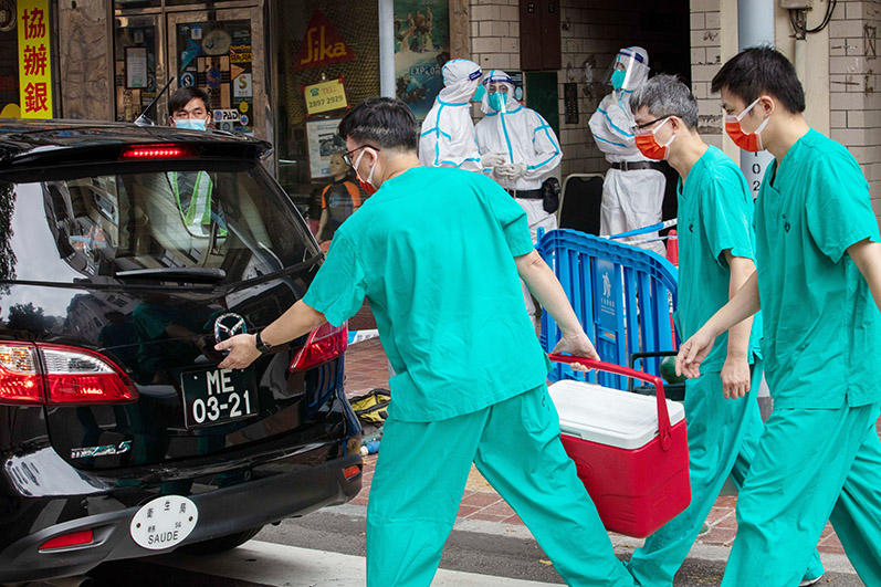 【特訊】本澳新增一例輸入個案,為34歲男性,內地居民,在澳門居住,於珠海市拱北口岸地下商場快遞區工作,與珠海市新增個案在珠海市拱北口岸地下商場有共同活動軌跡,其核酸檢測結果呈弱陽性,男患者居住的風順堂街18C號成熙閣第二座列為紅碼區,採取系列防疫措施。另外,本澳一對自葡國回澳的父母復陽,他們的女兒核檢結果呈陽性,被列為輸入關聯個案,居住的雅廉訪大馬路保寧閣被列為紅碼區,圍封範圍涉及大廈旁停車區內設封控區設施。