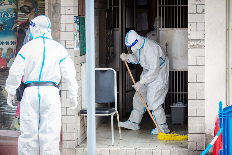 男患者居住的風順堂街18C號成熙閣第二座列為紅碼區,採取系列防疫措施。下午一時許,封控區專用垃圾桶運抵現場,警方吊車及負責環境消毒人員到場跟進,衛生局人員完成環境採樣離開大廈後,市政署人員在場展開消毒工作。期間有住戶要求返回住所,亦有被圍封的地鋪負責人想離開,但被駐守人員勸退。