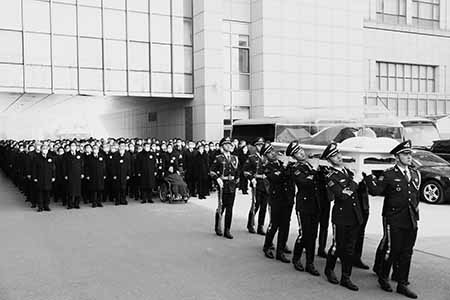 上午10時50分,靈車駛進八寶山革命公墓。在大禮堂,習近平等和江澤民同志親屬向江澤民同志作最後的訣別。