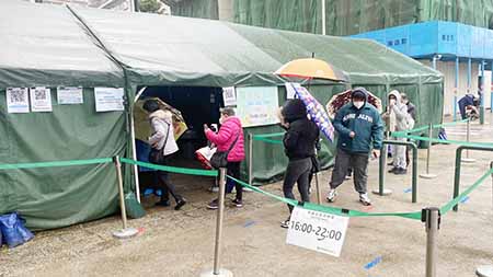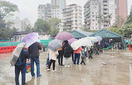 本澳昨日(十四日)起至下週日(十八日)開展第二階段派發抗疫包,全澳設三十五個派發點,實行嚴格預約制。除了塔石體育館A、B館,其他站點均分別設有核酸檢測和抗疫包派發點。昨日第二階段抗疫包派發首日,設於戶外的二龍喉核酸檢測站,不少市民要冒寒風冷雨排隊。在二龍喉站入口處沒有明確指示區分核檢站與派發點的位置,不少前來領取抗疫包的市民不清楚排隊位置,更有紅碼人士錯誤排到領取抗疫包的隊伍,亦有持殘疾症的人士誤以為所有派發點均設關愛通道,需要折返。