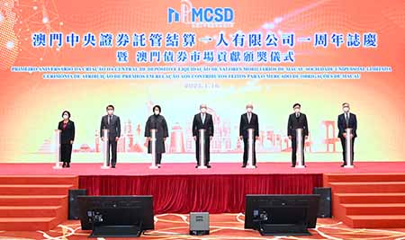 澳門金融管理局與澳門中央證券託管結算一人有限公司(MCSD)合辦活動慶祝成立一周年,行政長官賀一誠、中聯辦副主任嚴植嬋、中華人民共和國外交部駐澳特派員公署特派員劉顯法、經濟財政司司長李偉農、金融管理局行政管理委員會主席陳守信、公共資產監督規劃辦公室主任陳海帆,以及MCSD董事劉佳華主持周年誌慶亮燈儀式。政府部門、行業公會、境內外金融機構、企業、律師及會計師事務所等逾一百五十名代表出席。