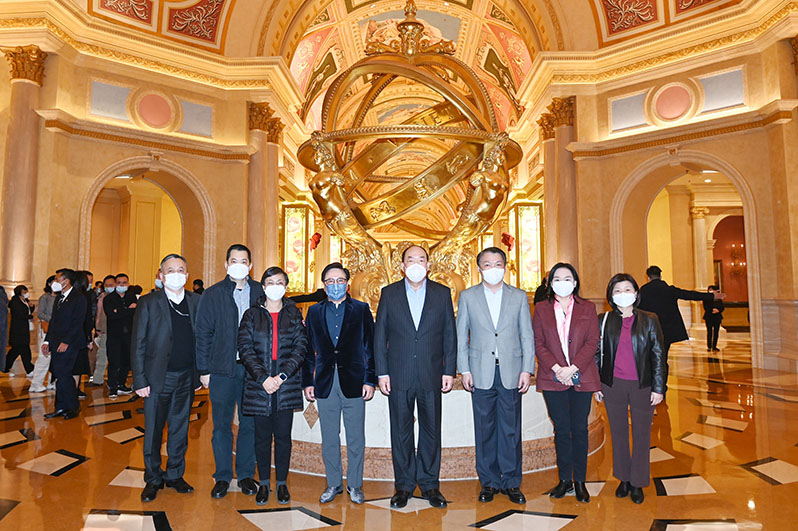 行政長官賀一誠伉儷於1月25日到訪六家綜合度假休閒企業,到訪期間,行賀一誠政長官聽取了各綜合度假休閒企業代表的介紹,瞭解新春期間企業設施的人流、酒店住房率,尤其關心非博彩元素的現況和未來發展規模,以及企業員工的就業情況等。賀一誠向企業代表表示,持續拓展和加強非博彩項目相當重要,有充足旅客訪澳的支撐下,這些項目必定大受歡迎,有利本澳吸引更多旅客來訪。他指出,發展非博彩元素可細水長流,方能讓本澳的休閒娛樂事業健康有序地持續發展下去。相關企業代表回應時表示,新春期間的酒店住房率達100%,人流暢旺,雖然酒店及相關配套設施的人手較為緊張,但企業上下士氣高昂,樂見澳門百業興旺,生機勃勃。