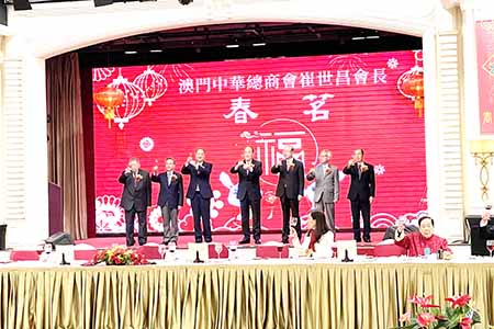 澳門中華總商會癸卯年春茗昨晚七時半假萬豪軒舉行,行政長官賀一誠伉儷、中聯辦主任鄭新聰、外交部駐澳特派員公署特派員劉顯法、立法會主席高開賢、終審法院院長岑浩輝等嘉賓出席。
