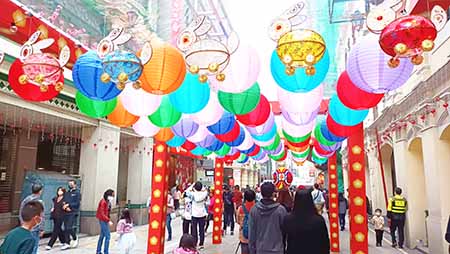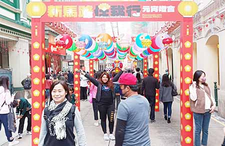 旅遊局的「2022幻彩耀濠江」燈飾佈置以及市政署的賀歲燈飾設置至元宵節止,居民和旅客把握機會打卡拍照,加上「悠氹仔」、「悠路環」及「關前薈」多項盛事活動,疊加「旅遊+盛事」效應,延續節慶氣氛。