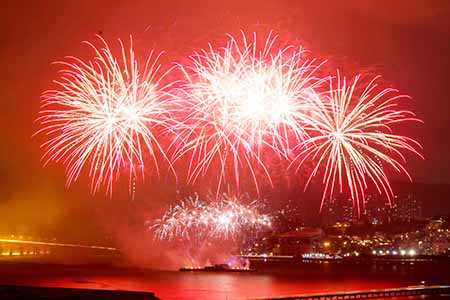 「歲歲平安—絢麗澳門煙花匯演」壓軸煙花表演昨晚九時正在旅遊塔對出海面絢麗綻放。歷時十五分鐘的煙花表演,以元宵佳節為主題,呈現彩虹橋、光珠牆及燈籠造型等特別煙花效果,並配以浪漫的流行曲背景音樂,增添元宵佳節的情懷及氣氛。