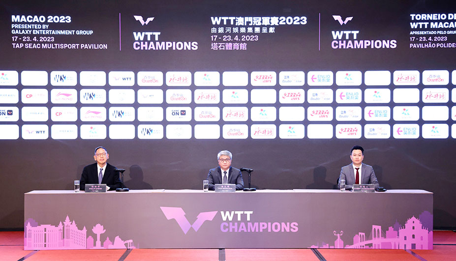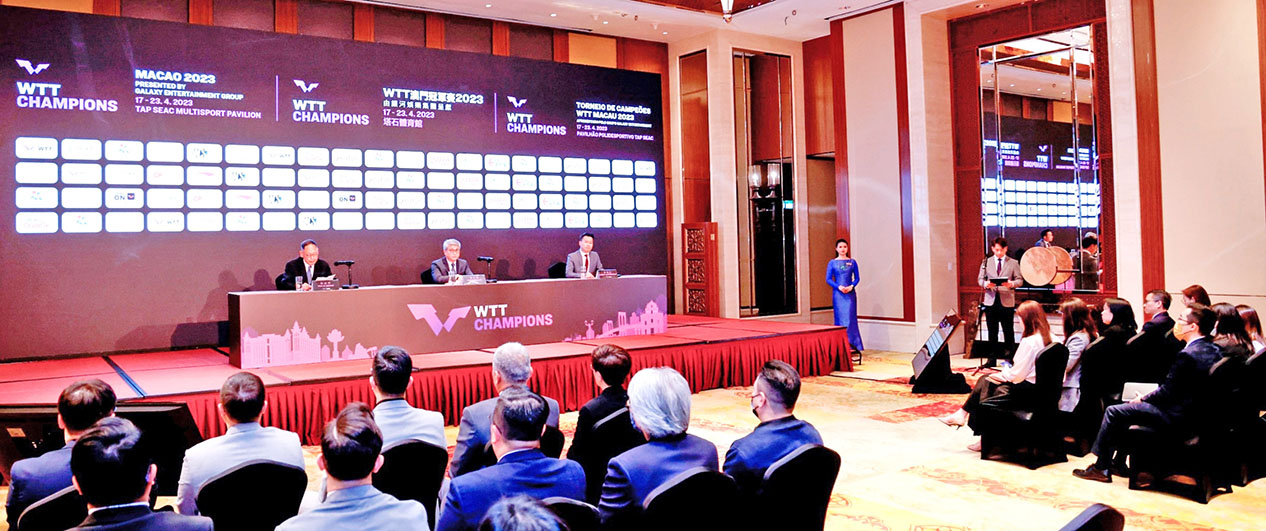 【特訊】由體育局、世界乒乓球職業大聯盟及銀河娛樂集團主辦、澳門乒乓總會協辦的「WTT澳門冠軍賽2023」將於4月17日至23日在塔石體育館舉行。一眾世界頂級乒乓球運動員將向市民和旅客展示精湛的球技,勢必上演連場激戰。體育局局長潘永權指,今年賽事由以往五天增加至七天,讓更多觀眾可到現場欣賞精彩的賽事,並相信吸引來自各地的球迷延長留澳的時間。