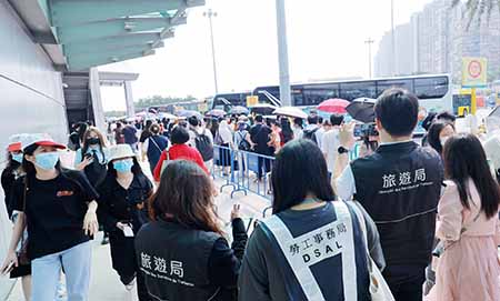 各旅客詢問處亦因應情況調配人手,接待旅客查詢,旅遊熱線(853)2833 3000保持24小時運作,如接獲各類型相關的突發事件,將立即跟進及處理。