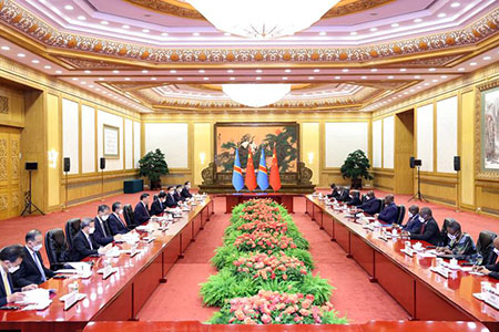 【中新社北京5月26日電】5月26日下午,中國國家主席習近平在人民大會堂同來華進行國事訪問的剛果(金)總統齊塞克迪舉行會談。兩國元首宣佈,將兩國合作共贏的戰略夥伴關係提升為全面戰略合作夥伴關係。