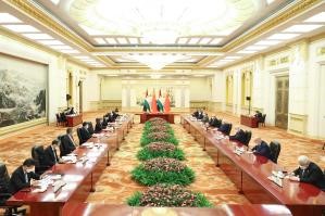趙樂際表示,中巴建交35年來,始終是好朋友、好夥伴、好兄弟。習近平主席和阿巴斯總統昨日共同宣布中巴建立戰略夥伴關係,把兩國關係提升到新高度。中國全國人大願繼續同巴立法機構密切友好往來,為深化兩國傳統友誼、推進務實合作貢獻力量。趙樂際介紹了中國式現代化的理念和實踐,表示中國邁向現代化是世界和平力量的增長、是國際正義力量的壯大。無論國際風雲如何變幻,中方都將始終堅定支持巴勒斯坦人民恢復民族合法權利的正義事業。