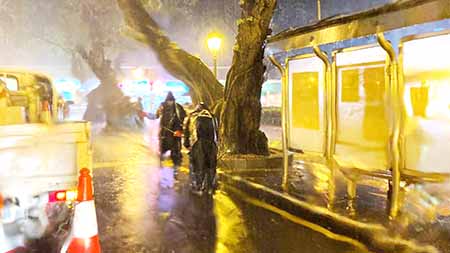 氣象局昨日晚上7時15分發出黃色暴雨警告信號,在黃色暴雨警告發出後,市政署即啟動應急機制,派員加強巡查及疏通各區渠道,清理路邊雨水井沖積的垃圾,並在安全情況下打開渠蓋疏導路面積水,加強公共渠網的排澇能力。同時,暴雨訊號期間,市政署於各主要雨水排澇泵站派員全程駐守,持續監察多個雨水泵房,確保各泵房運作正常,目前,全澳各區泵站均以最大排放量運行,盡力紓緩水浸情況。