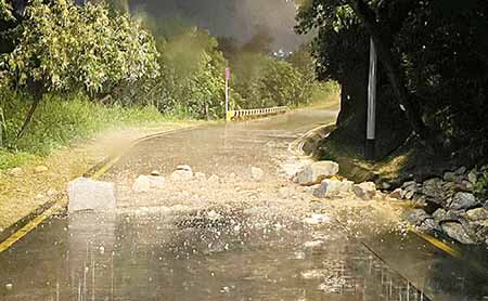 暴雨期間路環鄉村馬路現時有輕微山泥傾瀉,消防局已派員到場處理,請途經之市民留意。海關呼籲,紅色暴雨警告信號現正生效,請市民避免外出及靠近山邊,以免發生意外。