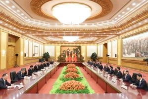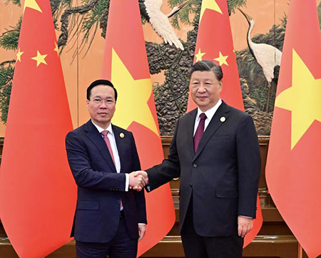 【中新社北京10月20日電】10月20日上午,中國國家主席習近平在人民大會堂會見來華出席第三屆“一帶一路”國際合作高峰論壇的越南國家主席武文賞。